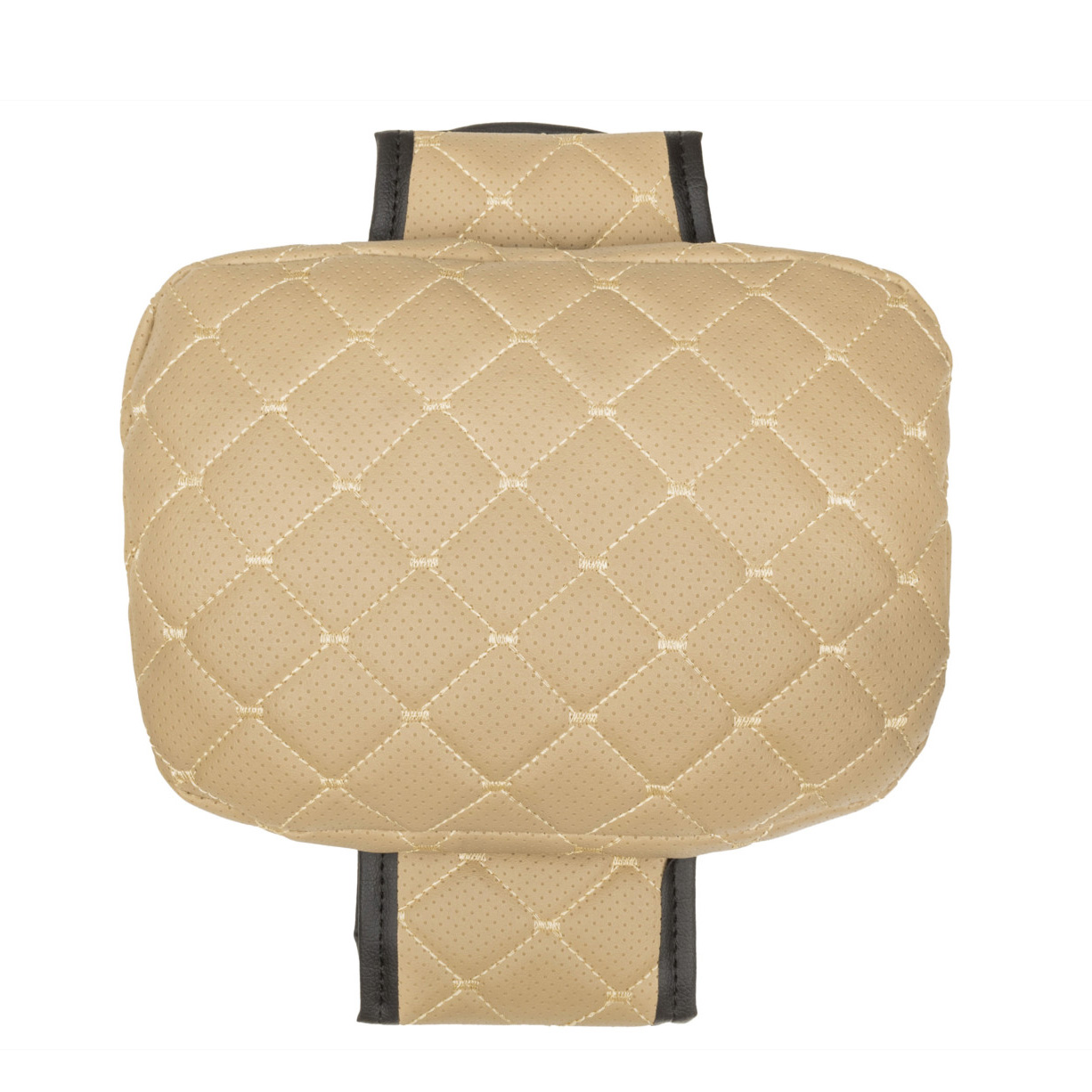 Подушка на подголовник с регулировкой из эко-кожи, бежевый ромб с бежевой нитью